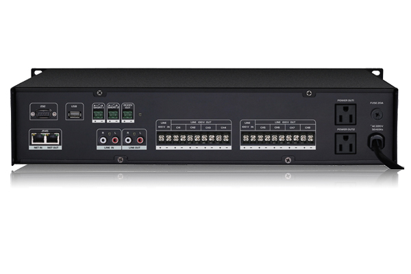 具有电源及分区管理功能,安装在分控机房或弱电井内,输出连接功率放大器。